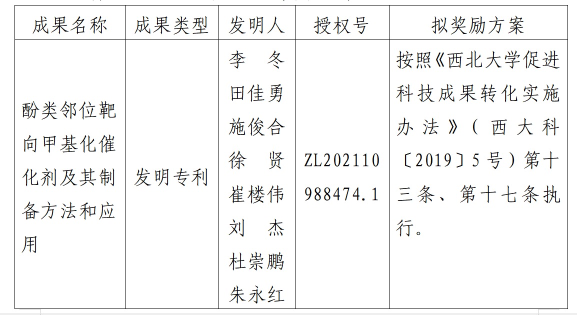 按照《437ccm·必赢国际促进科技成果转化实施办法》(西大科〔2019〕5号)相关规定,拟对必赢官网化工学院李冬教授作为成果负责人的1项发明专利权实施转化,现将相关信息公示如下: