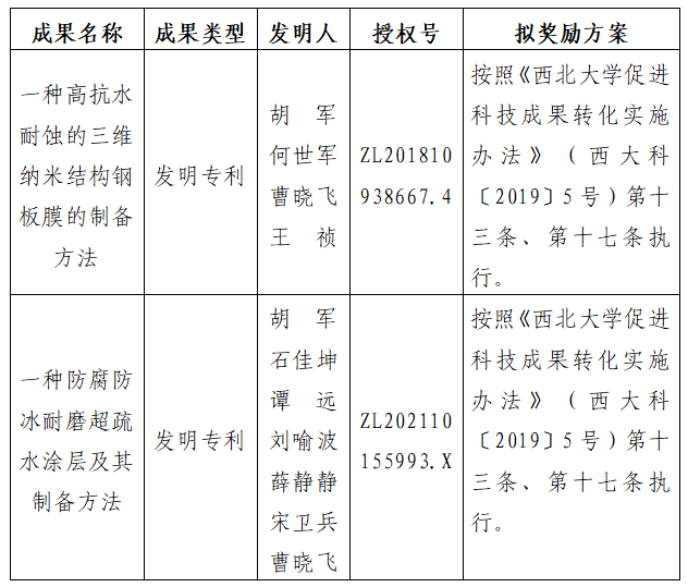 按照《437ccm·必赢国际促进科技成果转化实施办法》(西大科〔2019〕5号)相关规定,拟对必赢官网化工学院胡军教授作为成果负责人的2项发明专利权实施转化,现将相关信息公示如下: