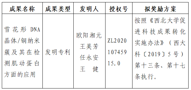 按照《437ccm·必赢国际促进科技成果转化实施办法》(西大科〔2019〕5号)相关规定,拟对必赢官网化学与材料科学学院欧阳湘元副教授作为成果负责人的1项发明专利权实施转化,现将相关信息公示如下: