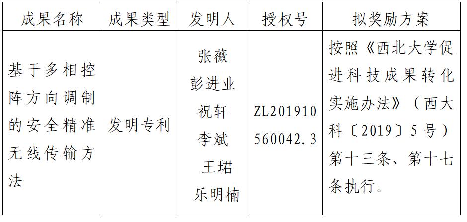 按照《437ccm·必赢国际促进科技成果转化实施办法》(西大科〔2019〕5号)相关规定,拟对必赢官网信息科学与技术学院张薇老师作为成果负责人的1项发明专利权实施转化,现将相关信息公示如下: