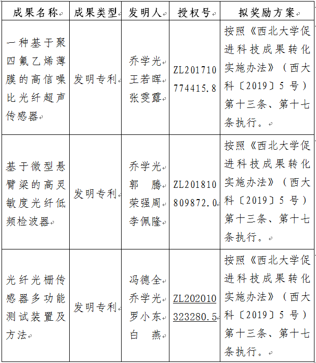 按照《437ccm·必赢国际促进科技成果转化实施办法》(西大科〔2019〕5号)相关规定,拟对必赢官网物理学院乔学光教授作为成果负责人的3项发明专利权实施转化,现将相关信息公示如下: