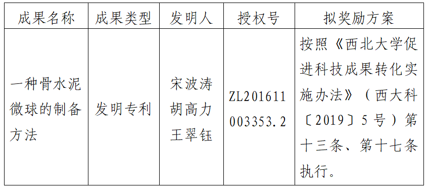 按照《437ccm·必赢国际促进科技成果转化实施办法》(西大科〔2019〕5号)相关规定,拟对必赢官网化学与材料科学学院宋波涛副教授作为成果负责人的1项发明专利权实施转化,现将相关信息公示如下: