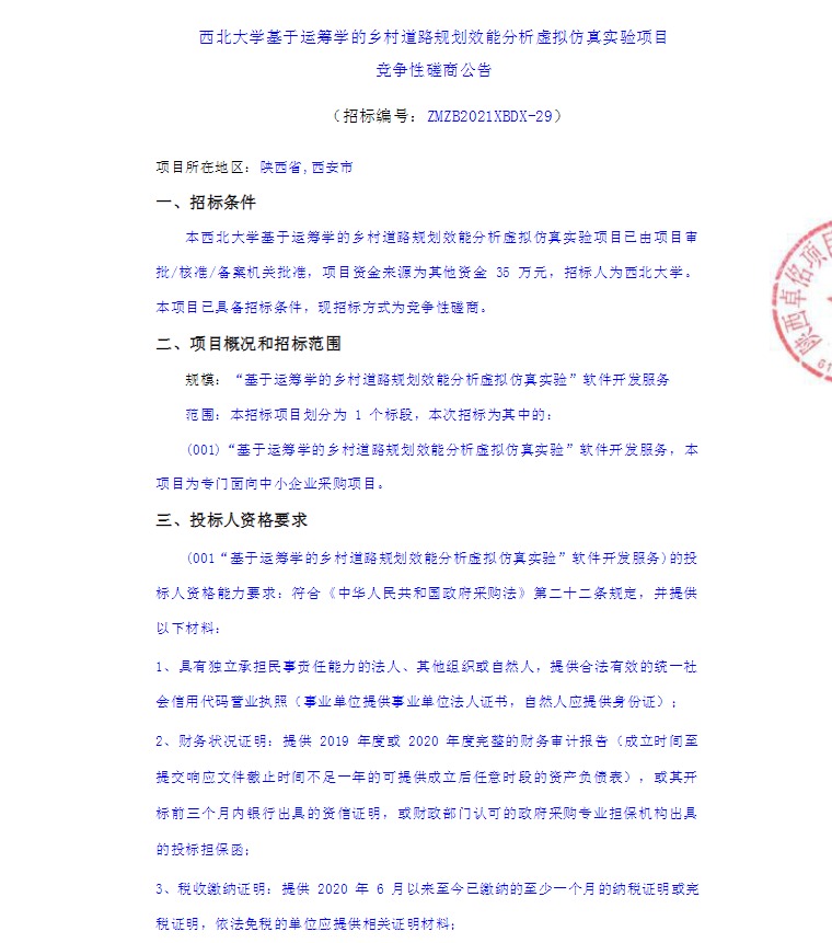 437ccm·必赢国际基于运筹学的乡村道路规划效能分析虚拟仿真实验项目竞争性磋商公告