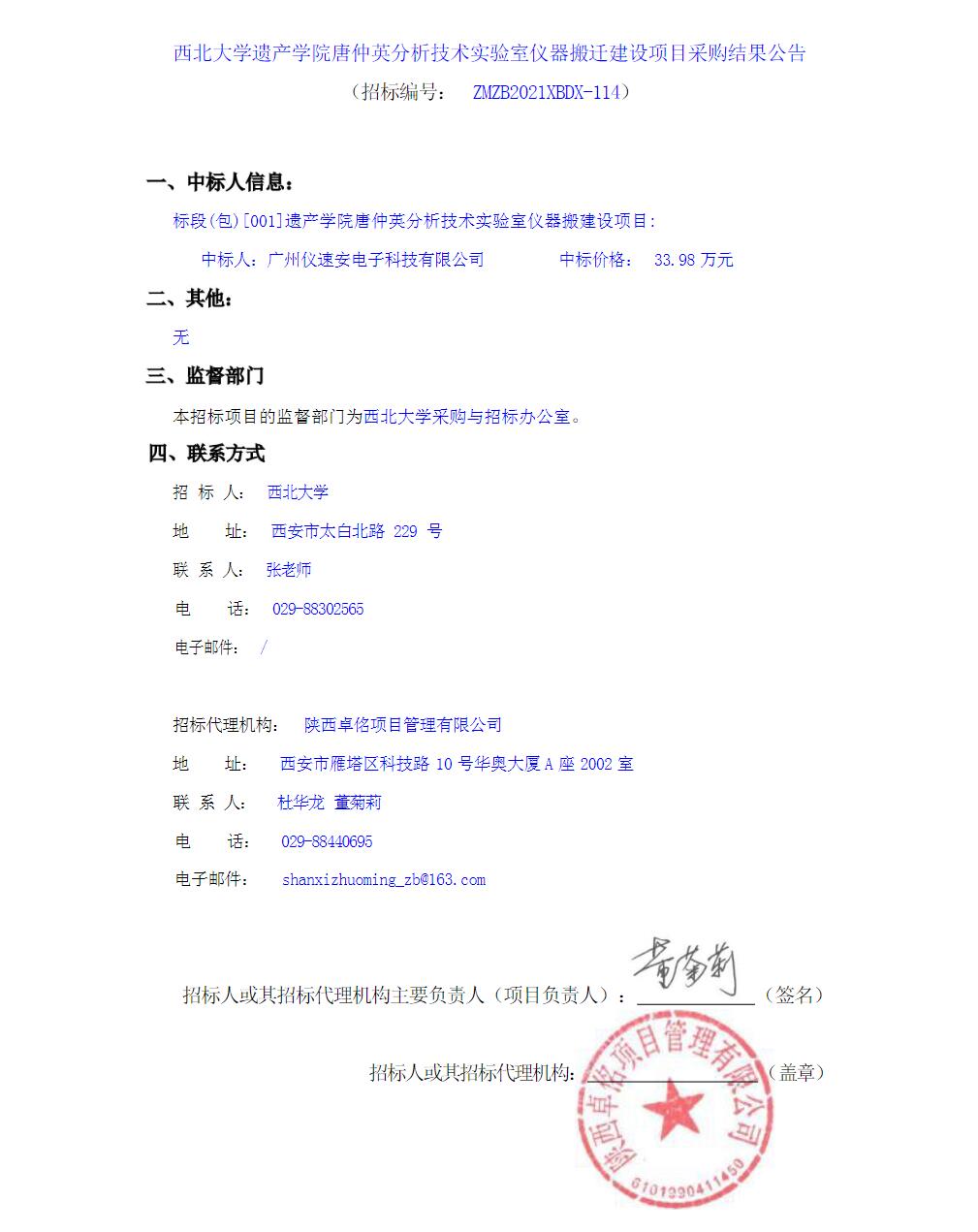 关于437ccm·必赢国际遗产学院唐仲英分析技术实验室仪器搬迁建设项目采购结果公告