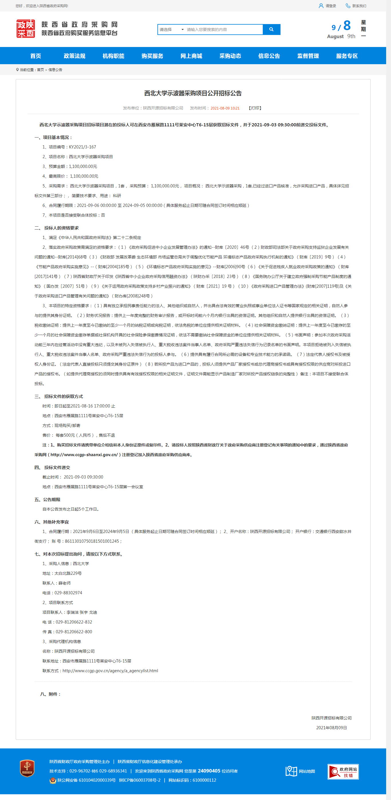 437ccm·必赢国际示波器采购项目公开招标公告 作者: 编辑:采购与招标办公室 时间:2021-08-09 原公告地址:http://www.ccgp-shaanxi.gov.cn/notice/noticeDetail.do?noticeguid=8a85be347b04610d017b28a3aa0f0939