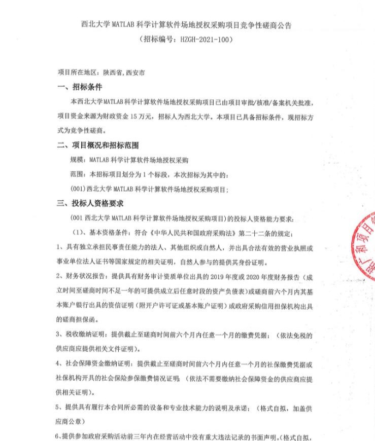 关于437ccm·必赢国际MATLAB科学计算软件场地授权采购项目竞争性磋商公告