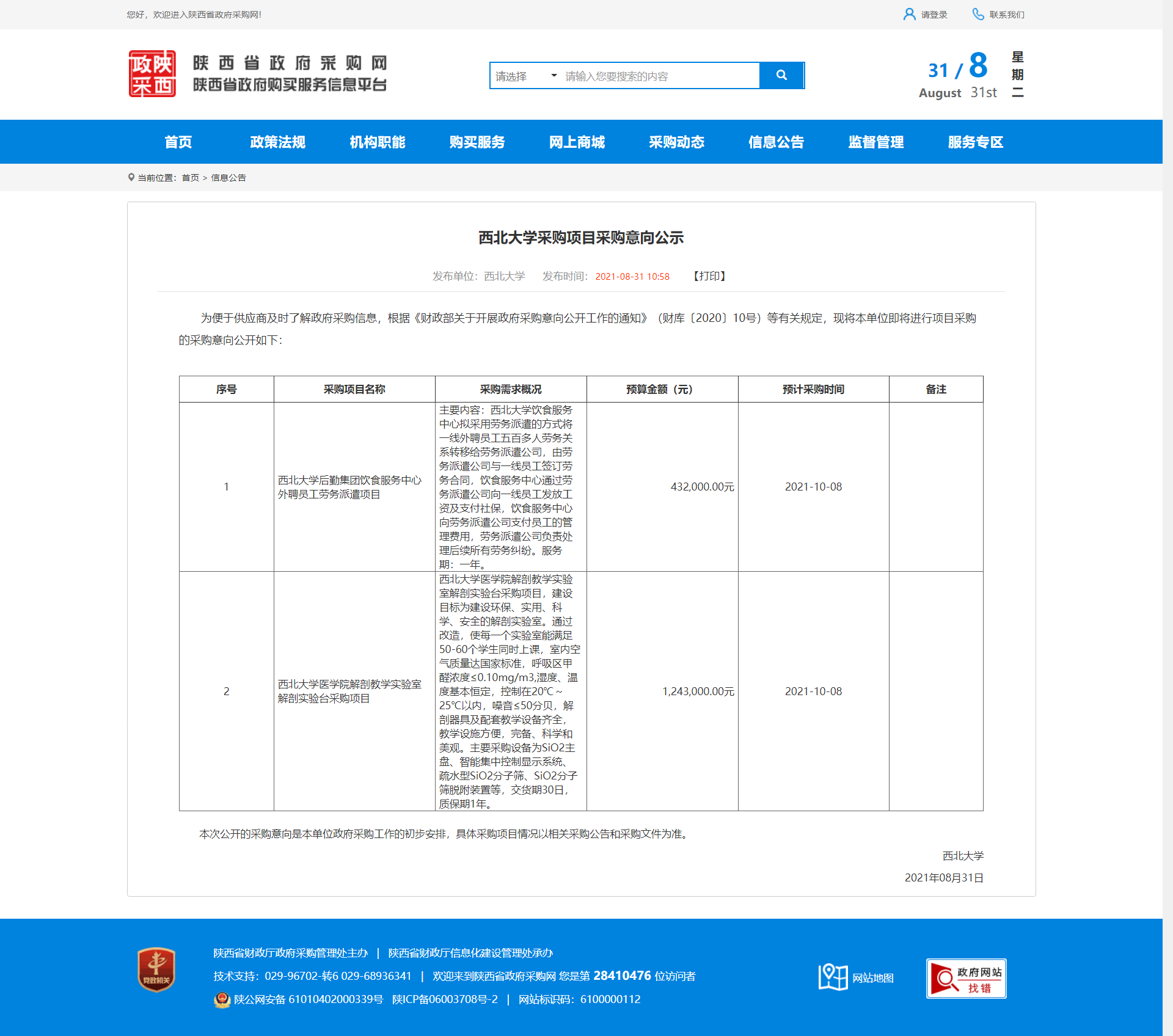 437ccm·必赢国际采购项目采购意向公示 作者: 编辑:采购与招标办公室 时间:2021-08-31 原公告地址:http://www.ccgp-shaanxi.gov.cn/notice/noticeDetail.do?noticeguid=8a85be337b0460f8017b9a22be817f9f