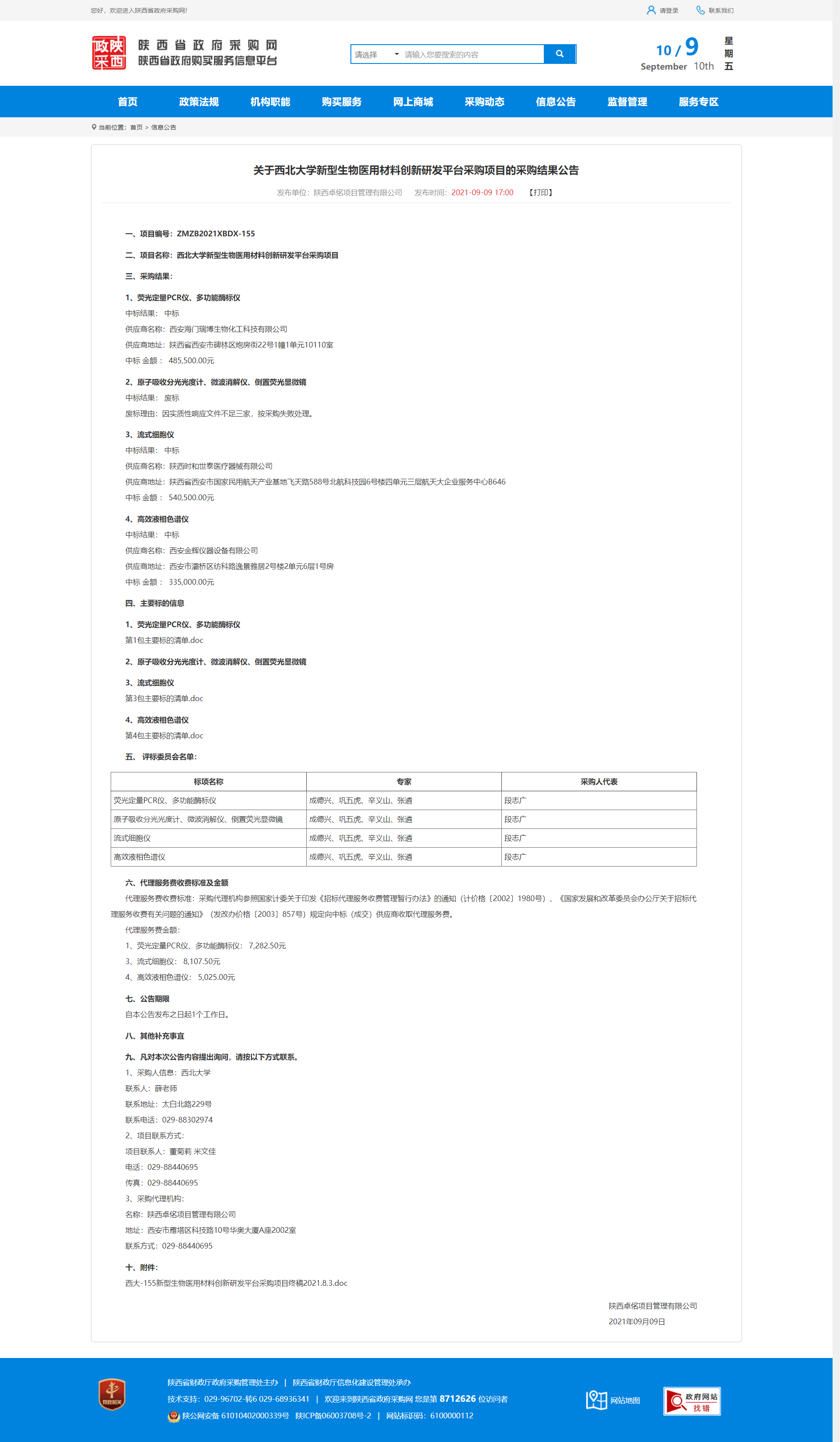 关于437ccm·必赢国际新型生物医用材料创新研发平台采购项目的采购结果公告 作者: 编辑:采购与招标办公室 时间:2021-09-10 原公告地址:http://www.ccgp-shaanxi.gov.cn/notice/noticeDetail.do?noticeguid=8a85be347bc00296017bc9c746595f00
