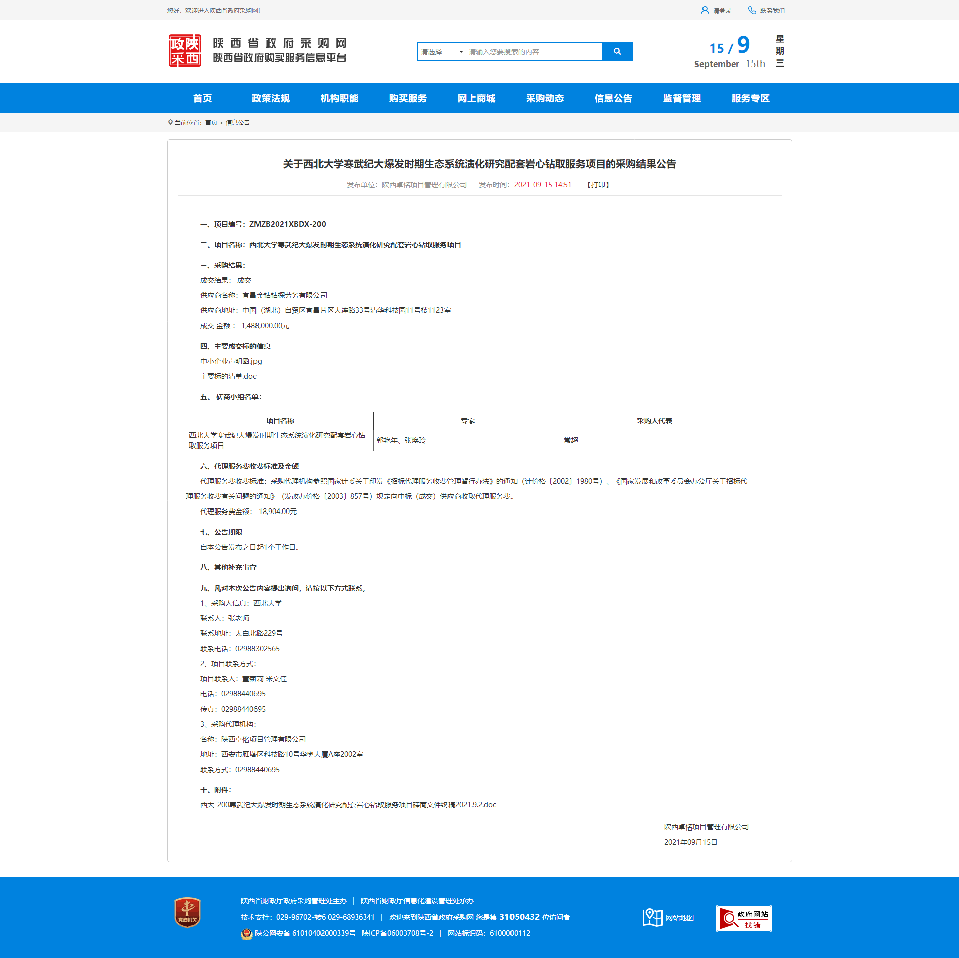 关于437ccm·必赢国际寒武纪大爆发时期生态系统演化研究配套岩心钻取服务项目的采购结果公告
