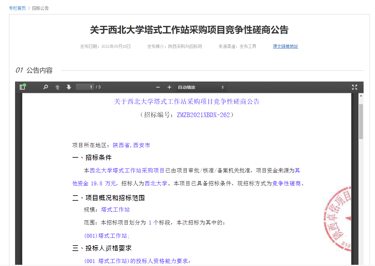 关于437ccm·必赢国际塔式工作站采购项目竞争性磋商公告 作者: 编辑:采购与招标办公室 时间:2021-09-17 原公告地址:http://bulletin.sntba.com/biddingBulletin/2021-09-16/343853.html