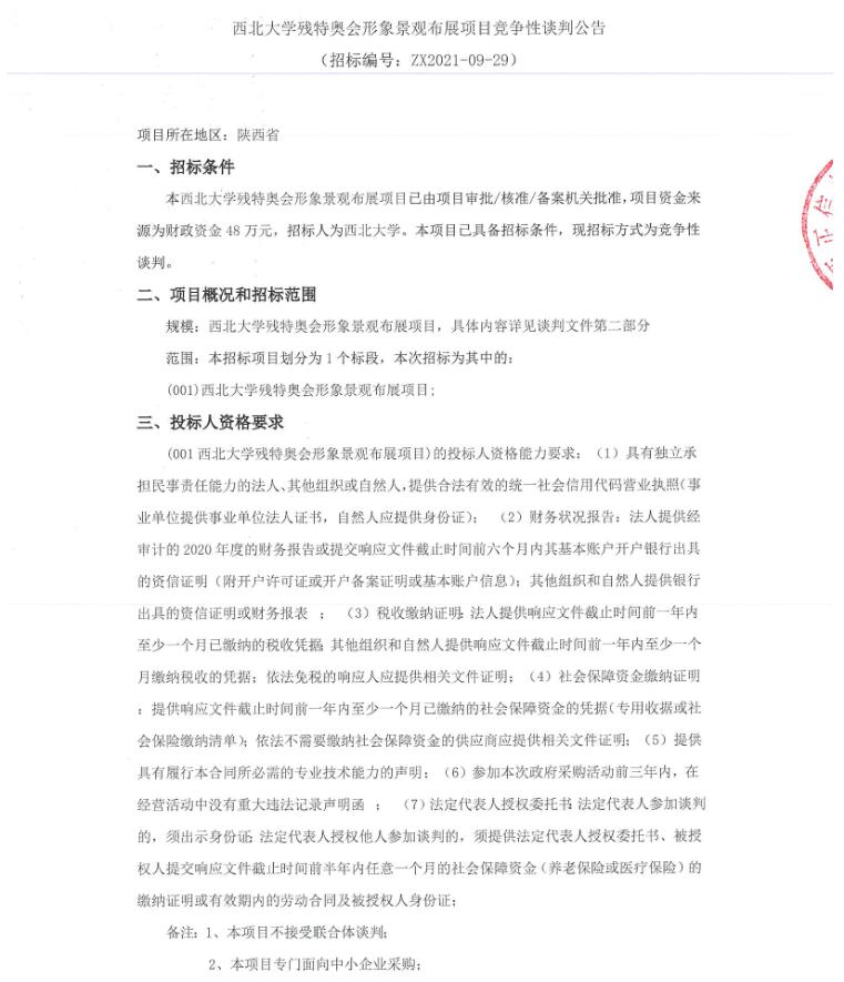 437ccm·必赢国际残特奥会形象景观布展项目竞争性谈判公告