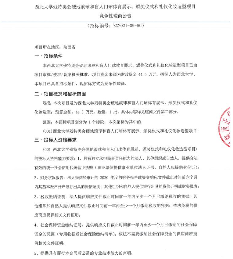 437ccm·必赢国际残特奥会硬地滚球和盲人门球体育展示、颁奖仪式和礼仪化妆造型项目竞争性磋商公告