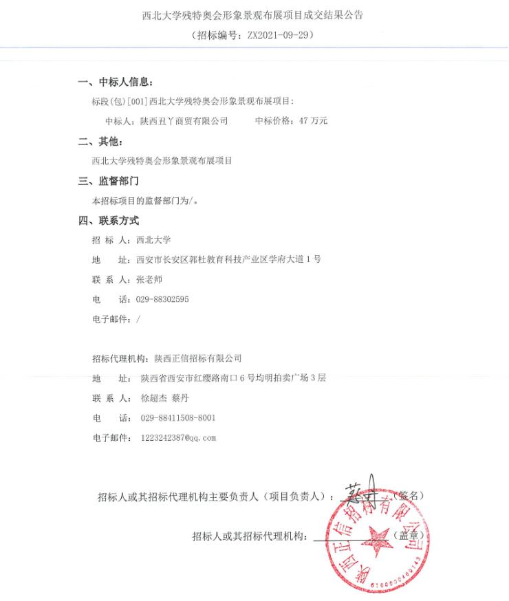 关于437ccm·必赢国际残特奥会形象景观布展项目成交结果公告
