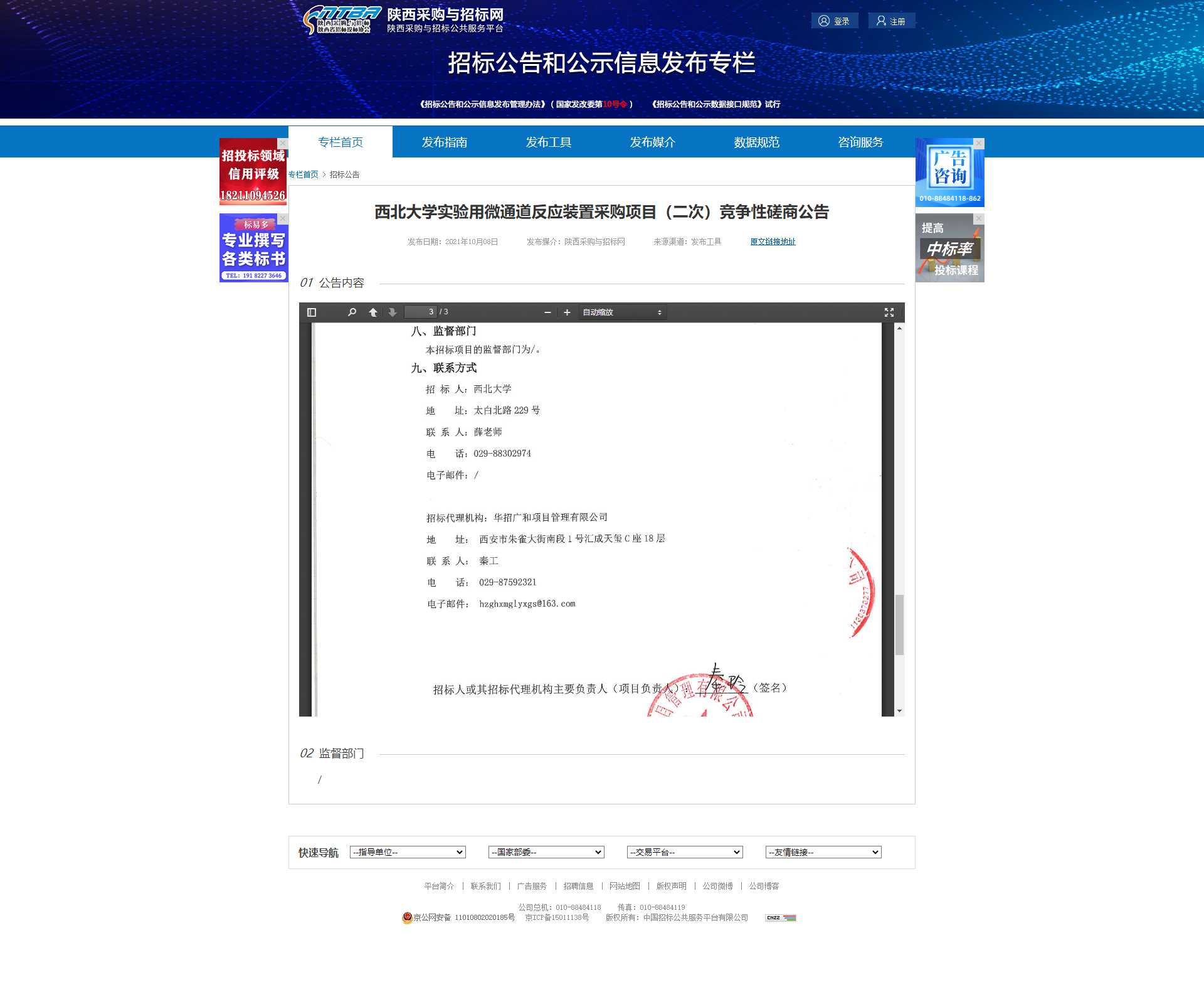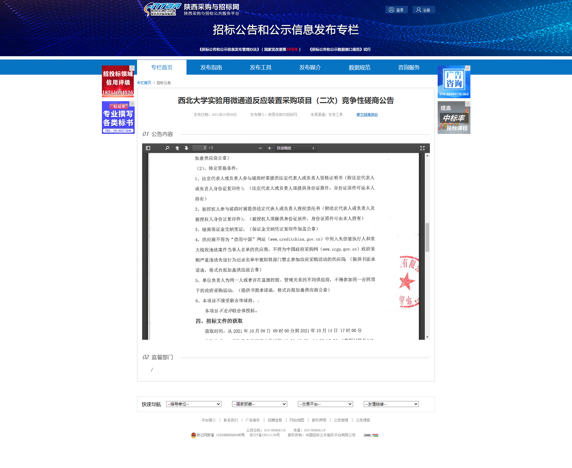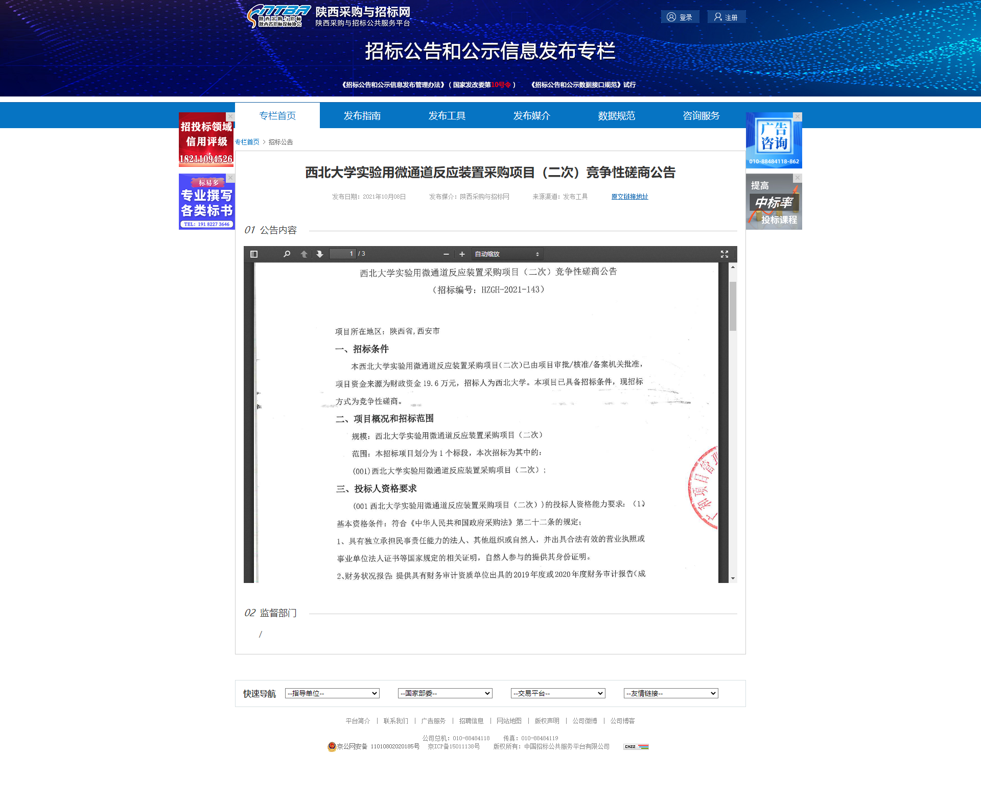 437ccm·必赢国际实验用微通道反应装置采购项目(二次)竞争性磋商公告 作者: 编辑:采购与招标办公室 时间:2021-10-08 原公告地址:http://bulletin.sntba.com/biddingBulletin/2021-10-08/350195.html