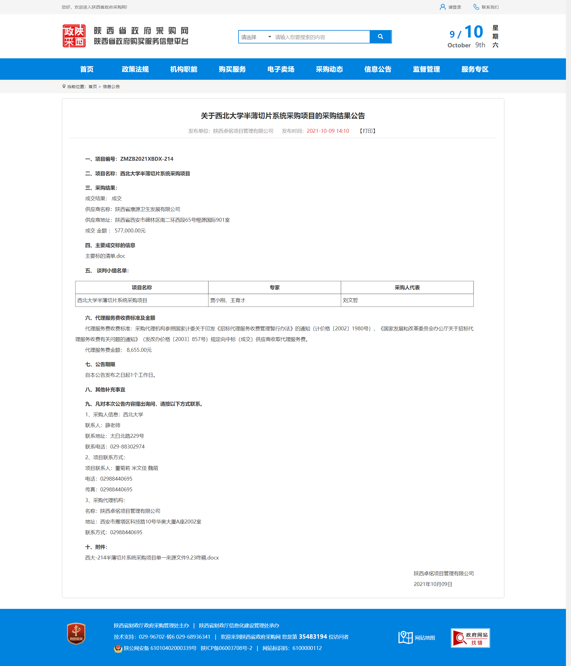 关于437ccm·必赢国际半薄切片系统采购项目的采购结果公告 作者: 编辑:采购与招标办公室 时间:2021-10-09 原公告地址:http://www.ccgp-shaanxi.gov.cn/notice/noticeDetail.do?noticeguid=8a85be337c20d0b4017c63ab46ca5540