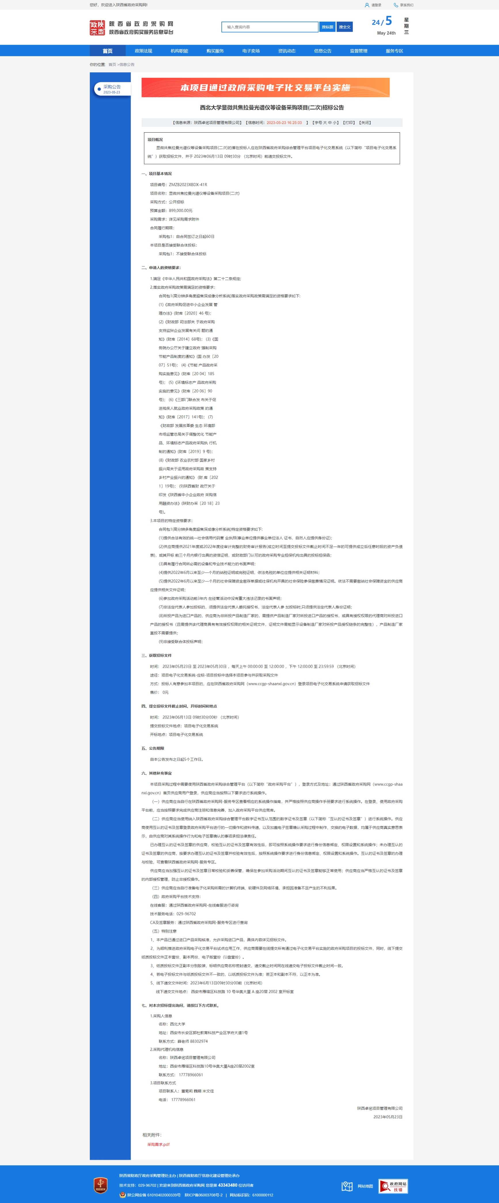 437ccm·必赢国际显微共焦拉曼光谱仪等设备采购项目(二次)招标公告 作者: 编辑:采购与招标办公室 时间:2023-05-24 原公告链接:http://www.ccgp-shaanxi.gov.cn/freecms/site/shaanxi/ggxx/info/2023/8a69c08788448619018847a28ea75e82.html?noticeType=001011¬iceId=5655d7d7-f944-11ed-9a8e-08c0eb20c666