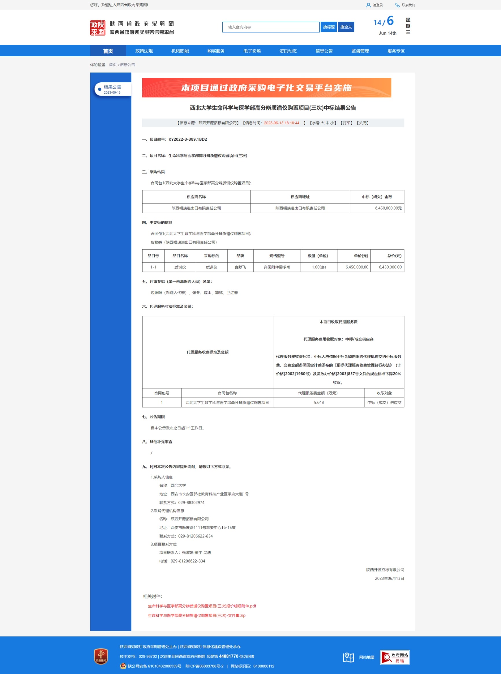 437ccm·必赢国际生命科学与医学部高分辨质谱仪购置项目(三次)中标结果公告 作者: 编辑:采购与招标办公室 时间:2023-06-14 原公告链接:http://www.ccgp-shaanxi.gov.cn/freecms/site/shaanxi/ggxx/info/2023/8a69c931884486120188b42f90a63f97.html?noticeType=001025¬iceId=bce12c69-09d4-11ee-9a8e-08c0eb20c666
