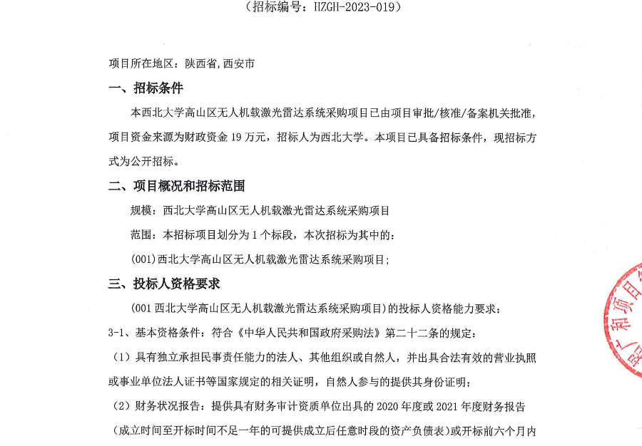 437ccm·必赢国际高山区无人机载激光雷达系统采购项目招标公告 作者: 编辑:采购与招标办公室 时间:2023-06-14 原公告链接:http://bulletin.sntba.com/biddingBulletin/2023-06-14/572031.html