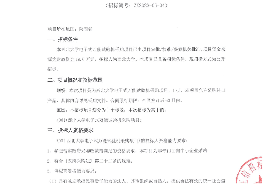 437ccm·必赢国际电子式万能试验机采购项目招标公告 作者: 编辑:采购与招标办公室 时间:2023-06-16 原公告链接:http://bulletin.sntba.com/biddingBulletin/2023-06-16/573127.html