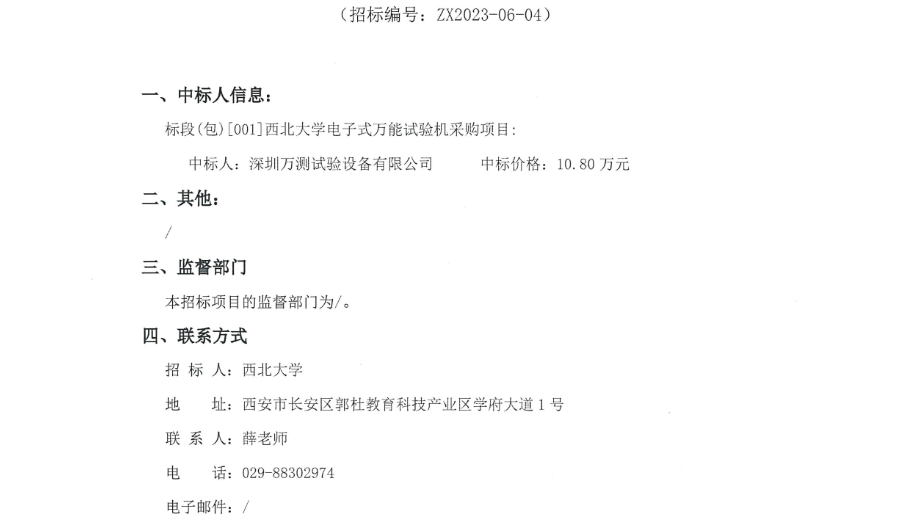 437ccm·必赢国际电子式万能试验机采购项目采购结果公告 作者: 编辑:采购与招标办公室 时间:2023-07-11 原公告链接:http://bulletin.sntba.com/resultBulletin/2023-07-11/583301.html