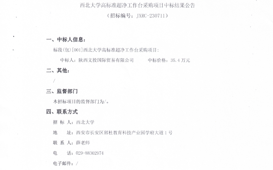 437ccm·必赢国际高标准超净工作台采购项目中标结果公告 作者: 编辑:采购与招标办公室 时间:2023-09-07 原公告链接:http://bulletin.sntba.com/resultBulletin/2023-09-07/651529.html