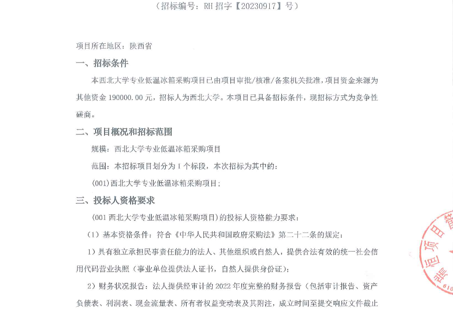 437ccm·必赢国际专业低温冰箱采购项目竞争性磋商公告 作者: 编辑:采购与招标办公室 时间:2023-09-22 原公告链接:http://bulletin.sntba.com/biddingBulletin/2023-09-22/680755.html