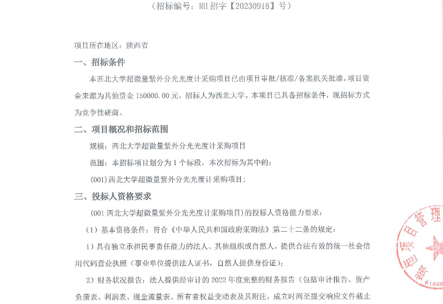 437ccm·必赢国际超微量紫外分光光度计采购项目竞争性磋商公告 作者: 编辑:采购与招标办公室 时间:2023-09-22 原公告链接:http://bulletin.sntba.com/biddingBulletin/2023-09-22/680812.html