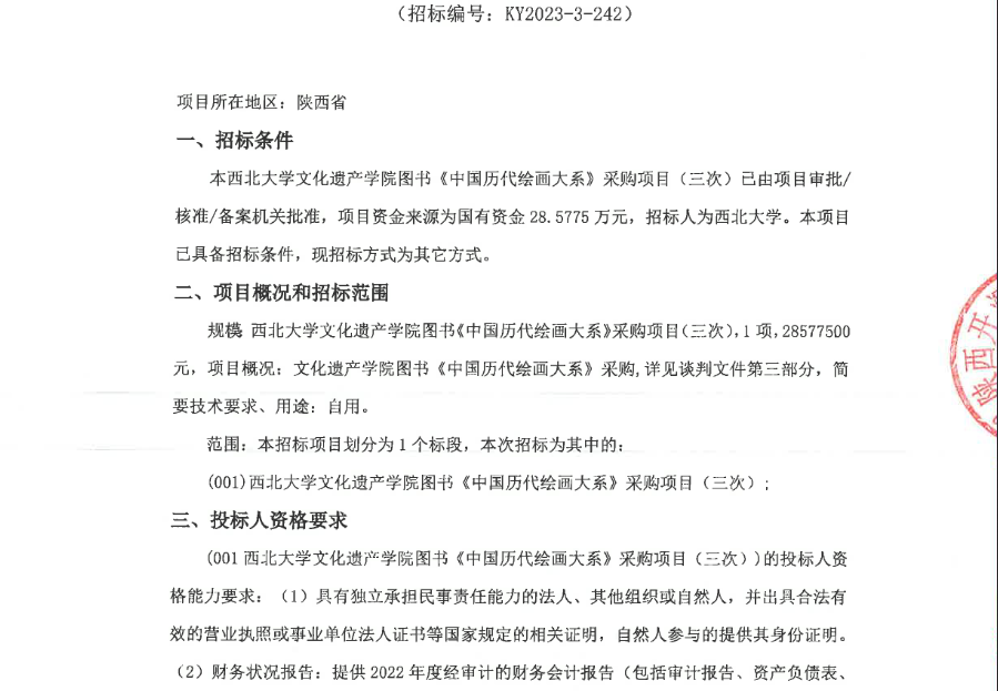 437ccm·必赢国际文化遗产学院图书《中国历代绘画大系》采购项目(三次)竞争性谈判公告 作者: 编辑:采购与招标办公室 时间:2023-10-17 原公告链接:http://bulletin.sntba.com/biddingBulletin/2023-10-17/734748.html