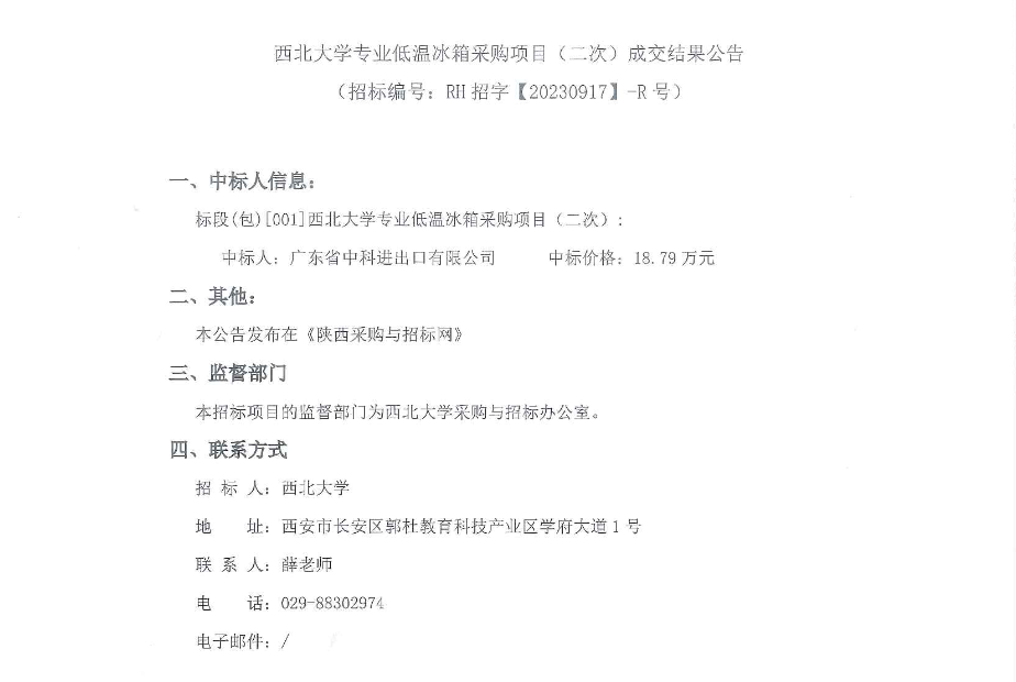 437ccm·必赢国际专业低温冰箱采购项目(二次)成交结果公告 作者: 编辑: 时间:2023-11-09 原公告链接:http://bulletin.sntba.com/resultBulletin/2023-11-07/790256.html