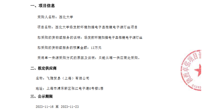 437ccm·必赢国际场发射环境扫描电子显微镜电子源灯丝项目单一来源采购征求意见公示 作者: 编辑:采购与招标办公室 时间:2023-11-16 原公告链接:http://www.sntba.com/website/gg_show.aspx?id=260702