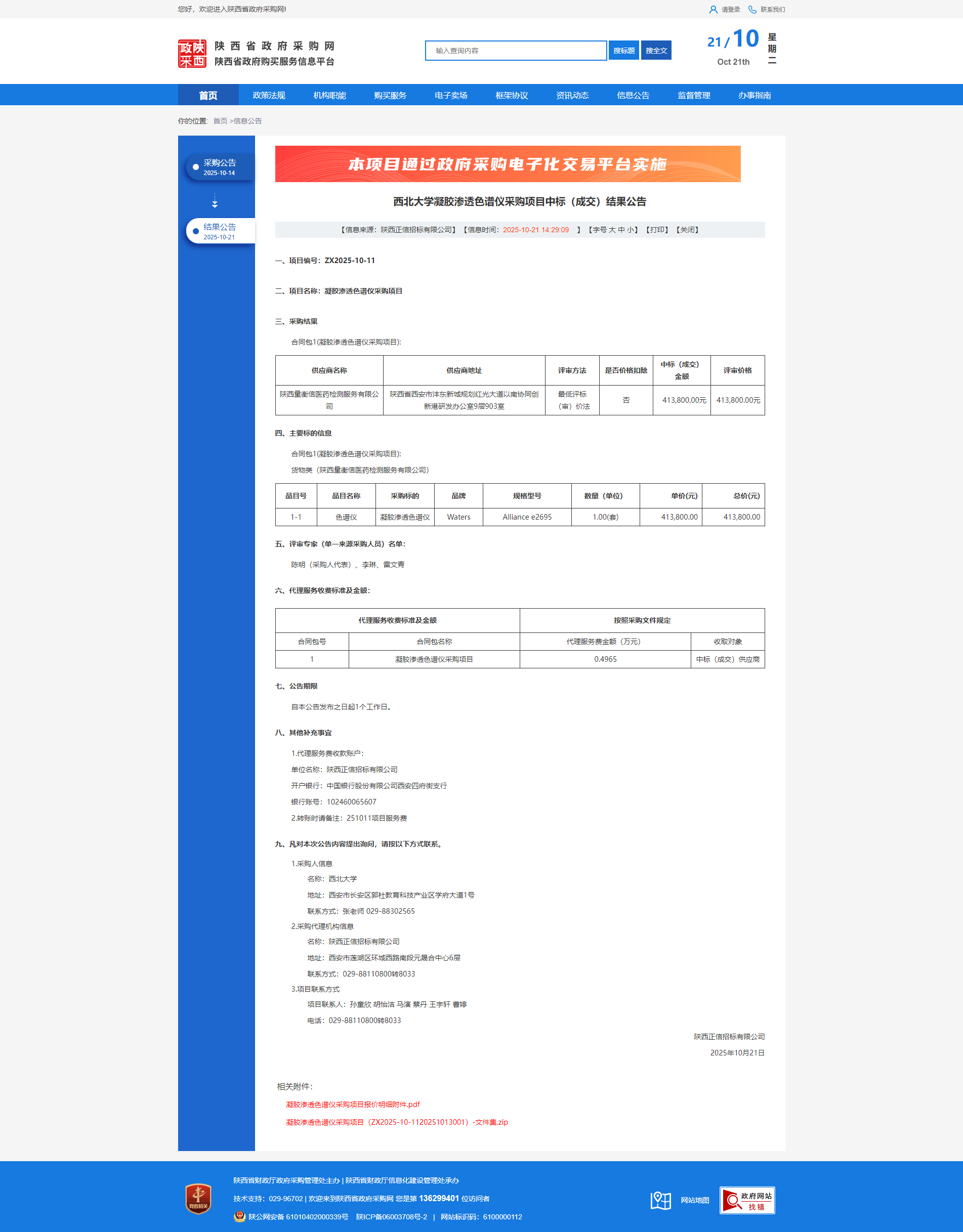 437ccm·必赢国际凝胶渗透色谱仪采购项目中标(成交)结果公告