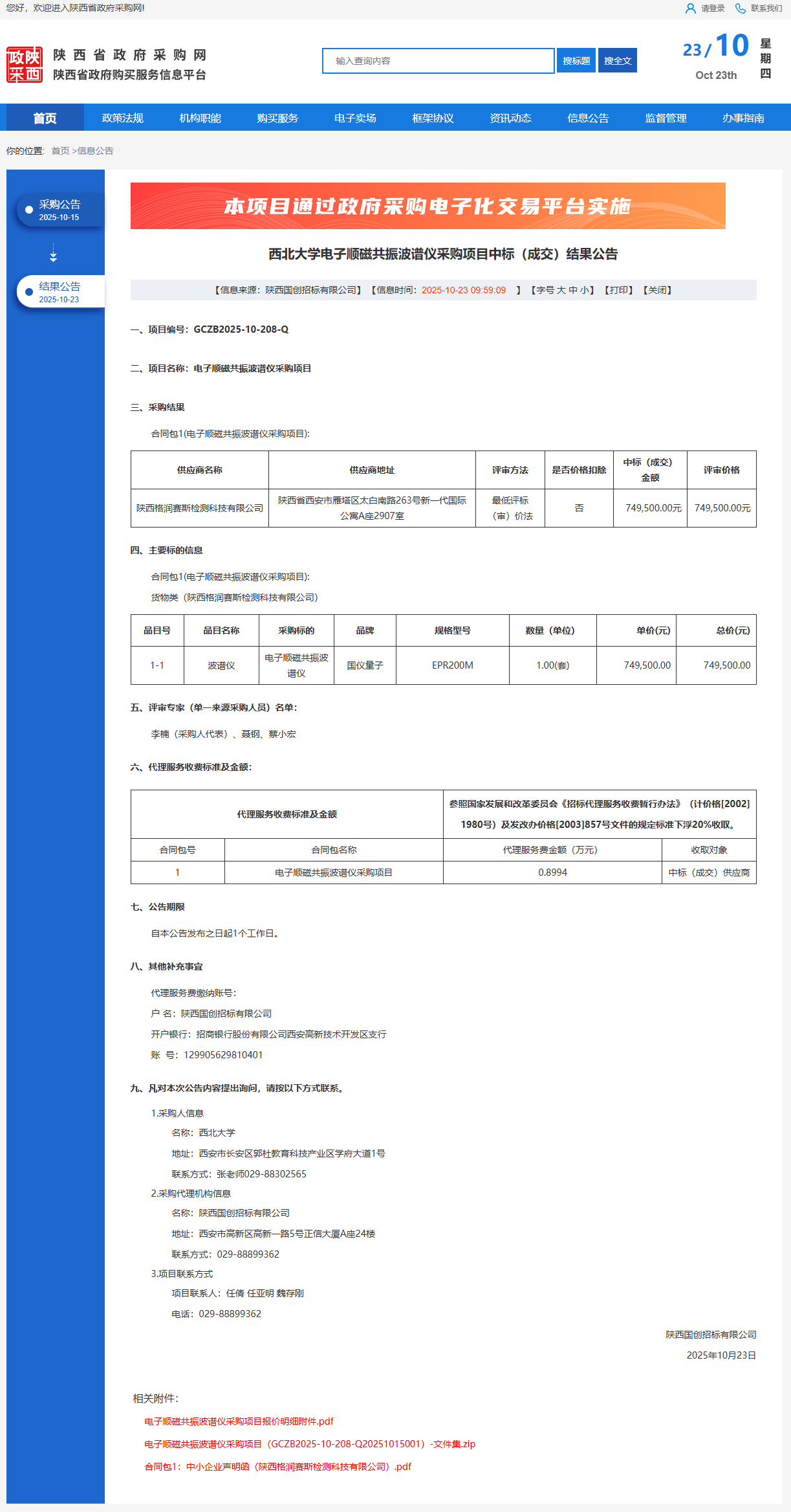 437ccm·必赢国际电子顺磁共振波谱仪采购项目中标(成交)结果公告