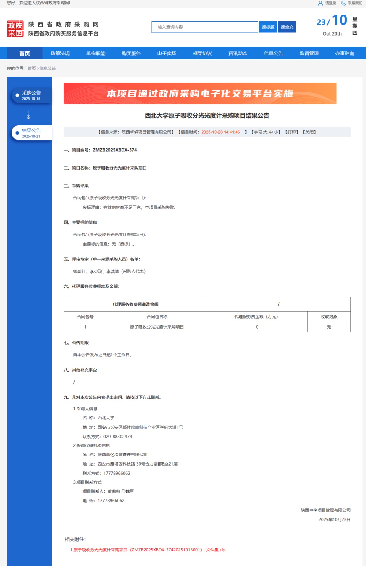 437ccm·必赢国际原子吸收分光光度计采购项目结果公告